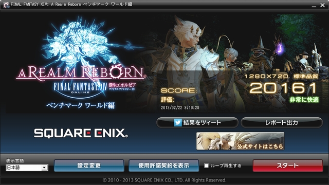 このベンチマークはFINAL FANTASY XIV: A Realm Rebornの動作を保証する物ではありません。