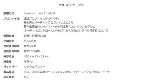 スペックは以下の通り。