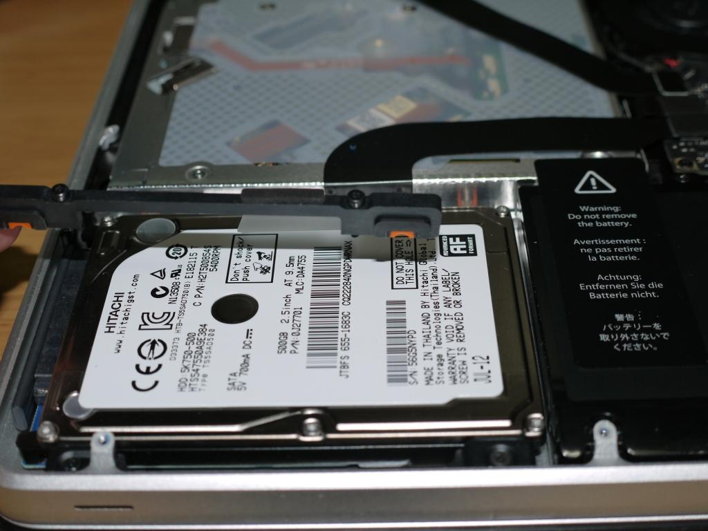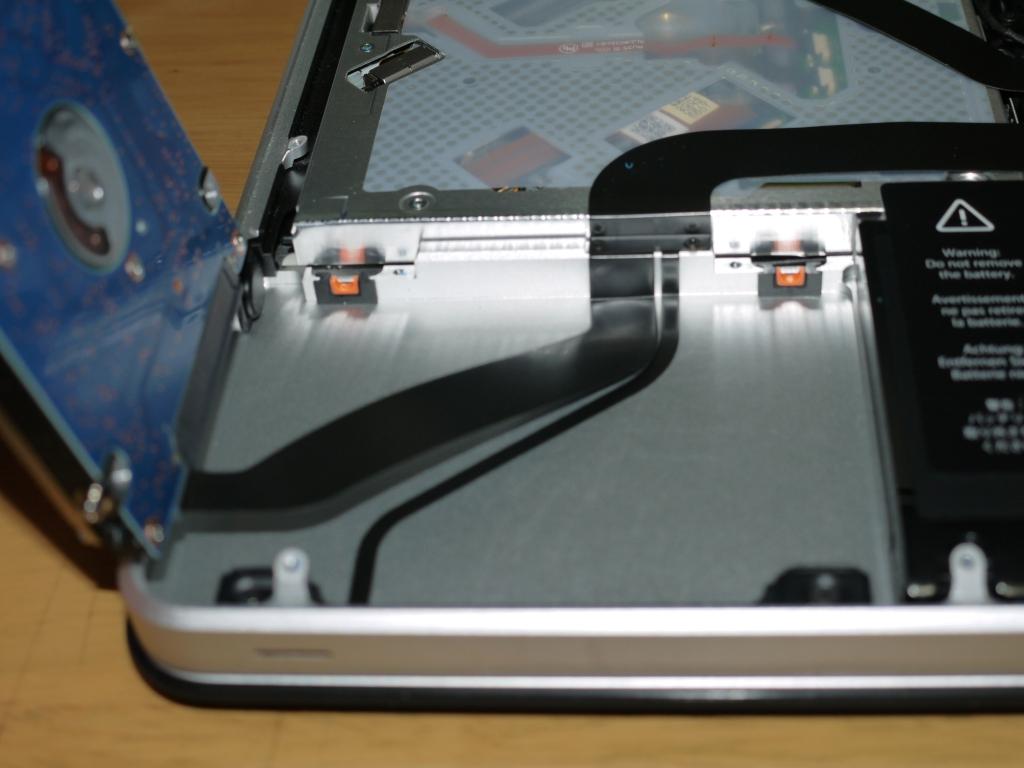 ネジを外すと、HDDを押さえていた部品が外れます。