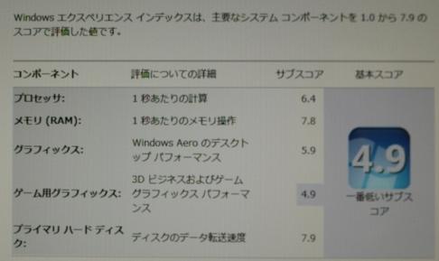 エクスペリエンス インデックスについては、ゲーム用グラフィックス以外は納得できるレベルになってます。 SSDは最高の7.9です。