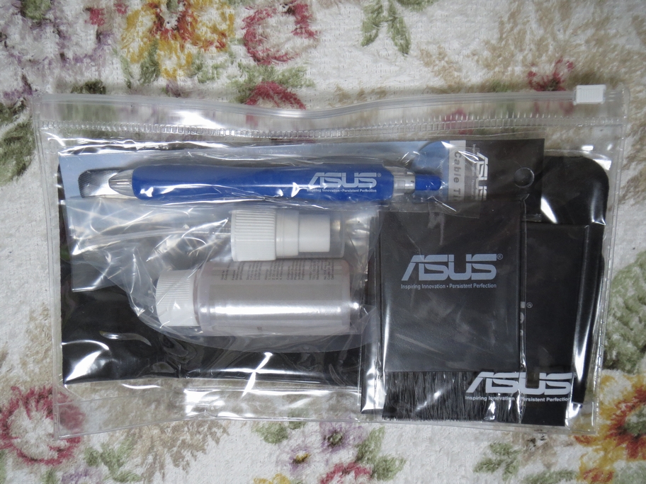 ASUSの手さげ袋の中にパンフレットと・・・クリーナーセット!!!