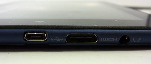 HDMIによる外部ディスプレイ出力も可能で、隣にはイヤフォン端子。また反対側にある2つの穴はスピーカーで、意外と音は悪くない。