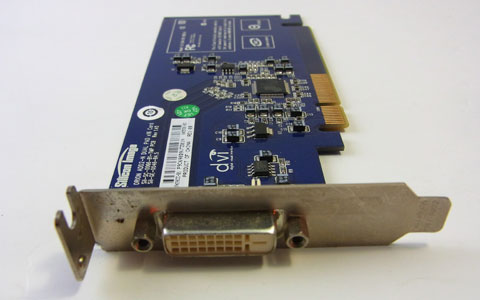 対応マザーボードに挿す事で、このカードならDVI出力が可能になる。インテルのチップセット統合型オンボードグラフィックは基本D-Sub出力なので、コストや消費電力を抑えつつDVI出力を確保したいメーカー製PCなどに装着されていたようだ。