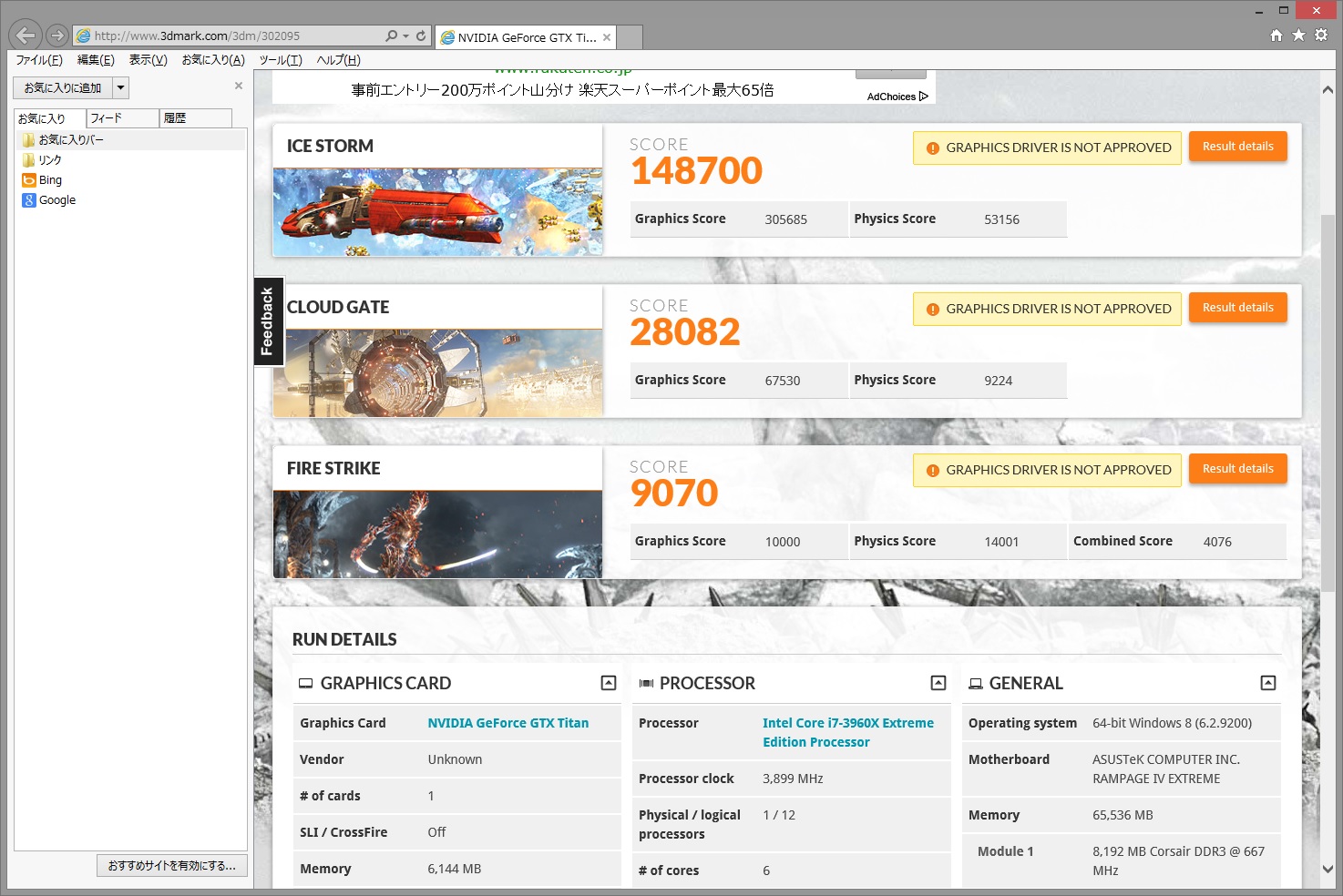 TITAN SLI の FIRESTRIKE は凄いスコアですね。
