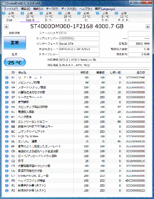 このシリーズ3TB以下は7,200rpmですが、4TBモデルは5,900rpmです。
