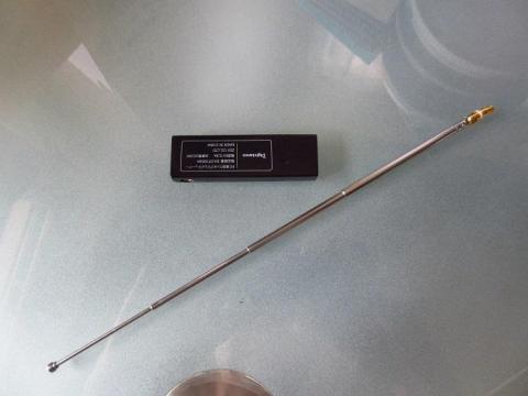 本体のほかにアンテナ、F 型変換コネクタ、視聴用アプリとドライバーが収録された CD-ROM が添付されています