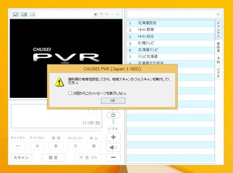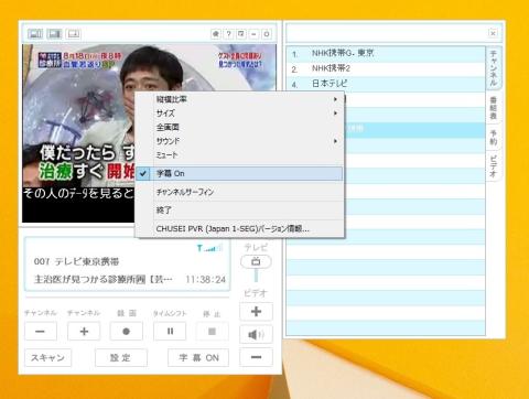 ワンセグ視聴ソフトウェア CHUSEI PVR の画面