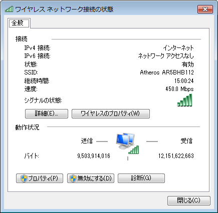 ・使用無線LANカード Atheros AR5BXB112 ( 450 Mpbs まで対応 )