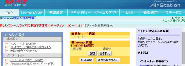 WZR-900DHPに替えてから回線が切れなくなりました。