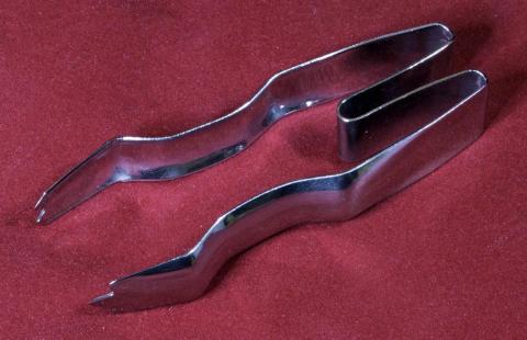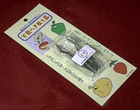 毛抜きを大きくしたような形で先端の片方は三角に尖った刃が一つ、もう片方は二つ互い違いに合わさるようになっています。