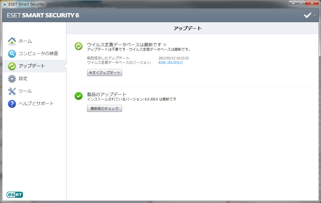 インターネットに常時接続されている環境で、自動更新をおこなっている場合にはここを見ることはほとんどありませんが、手動で更新したり、現在の状態を確認できます。