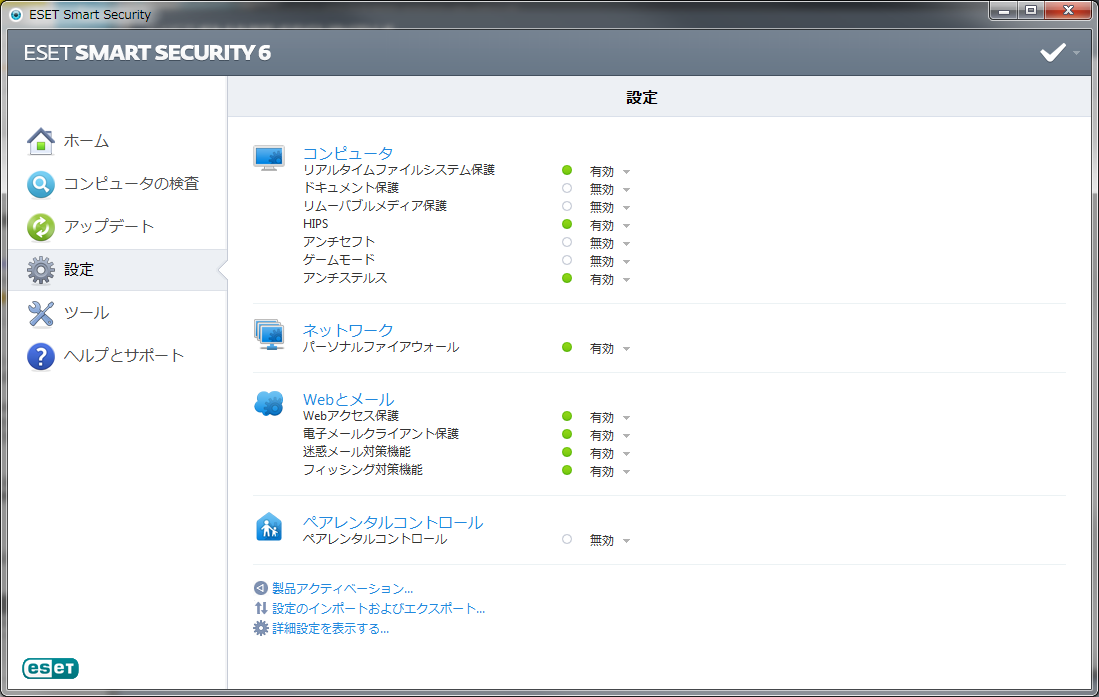 ウィルス防御、ネットワーク侵入からの防御、ウェブ・メールの保護に加えて、子供に対するコンテンツ規制を実施する ペアレンタルコントロール機能が備わっています。