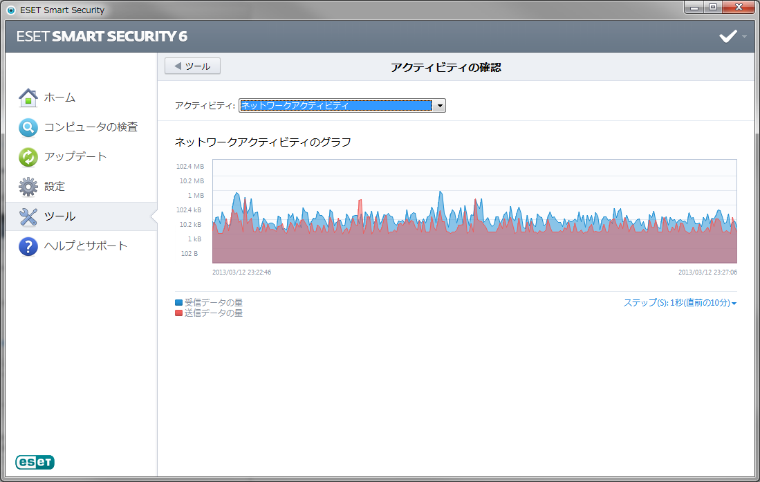 送受信データサイズの時系列変化をグラフ化してくれます。