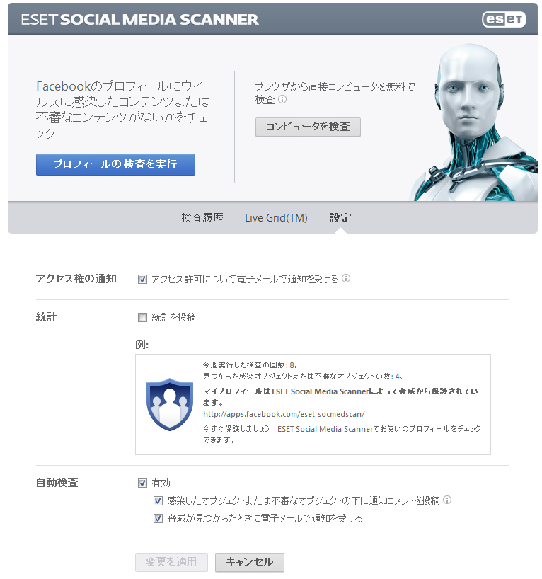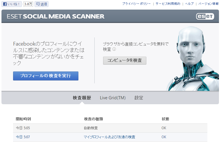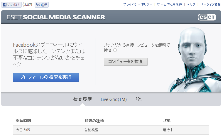 このアプリは、ESET製品とは別の無料サービスとなっています。