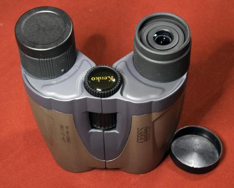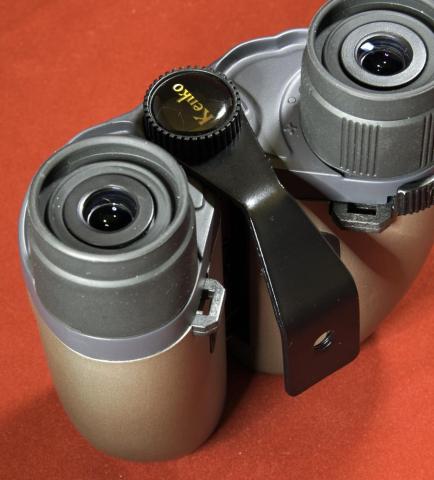 右目側には視度調整リングが付いており、本体真ん中に付いているピントリングと合わせ両眼のピントのずれを調整しておく必要があります。