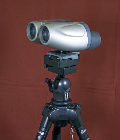 接眼側の真ん中にあるネジを外し三脚ホルダーを取り付ければ、双眼鏡を三脚に取り付ける事が出来ます。