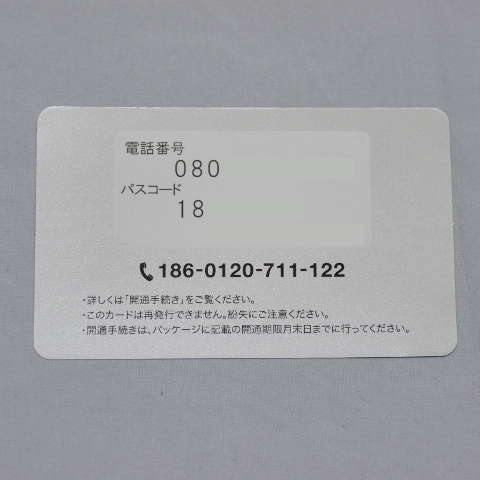 この裏側に記された、電話番号とパスコードを使って開通させるようです。