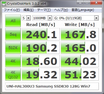 組み込んだSSDは、先の写真でも掲載していますが、Samsung SSD830です。