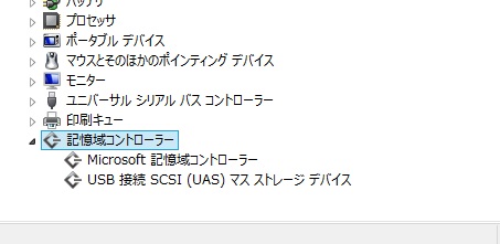 UASPで接続された場合、このように記憶域コントローラーが追加されます。
