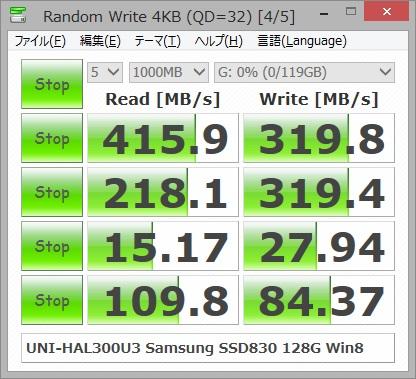Marvell-SE923での接続なので、フルスピードに到達していませんが、SSD本来のポテンシャルがどの程度あるかという参考にはなると思います。