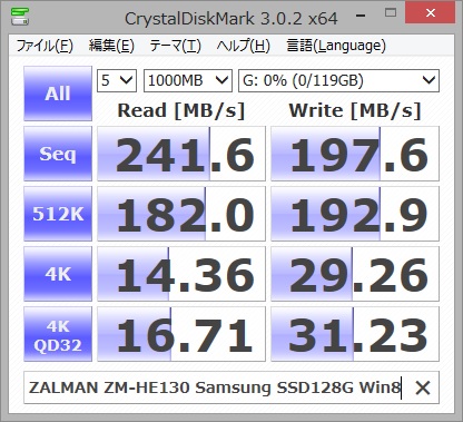 こちらのCDM結果は、SATA3接続時のものです。