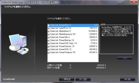 パケットライトソフトのInstantBarnは不要、PowerDirector10は、レビューさせてもらったUltraの方が機能が優れているのでインストールしない・・・