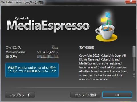 MediaEspressoは、単品のものだと、6.7が最新版なのですが、