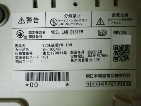 NはNECの意味らしいです 商品名はVDSL装置VH-100です 画像見てください