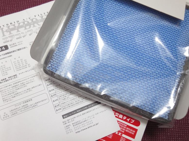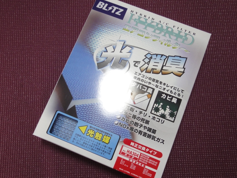エアコンフィルターは超格安商品は無かったので、 チューニングパーツで有名なBLITZ製を購入しました。