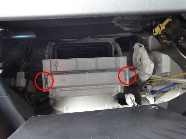 グローブボックスの奥に、エアコンフィルターのボックスがあるハズです。