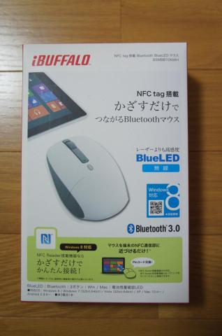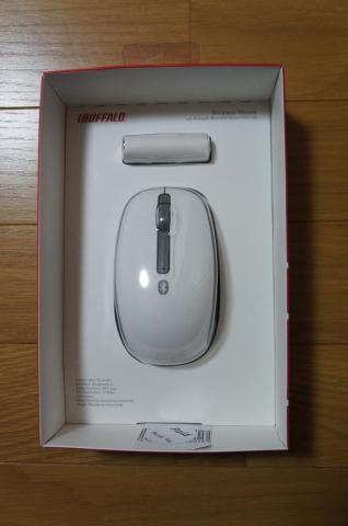 バッファローのBluetoothマウス、BSMBB10NWHです。センサーは、ブルーLEDです。
