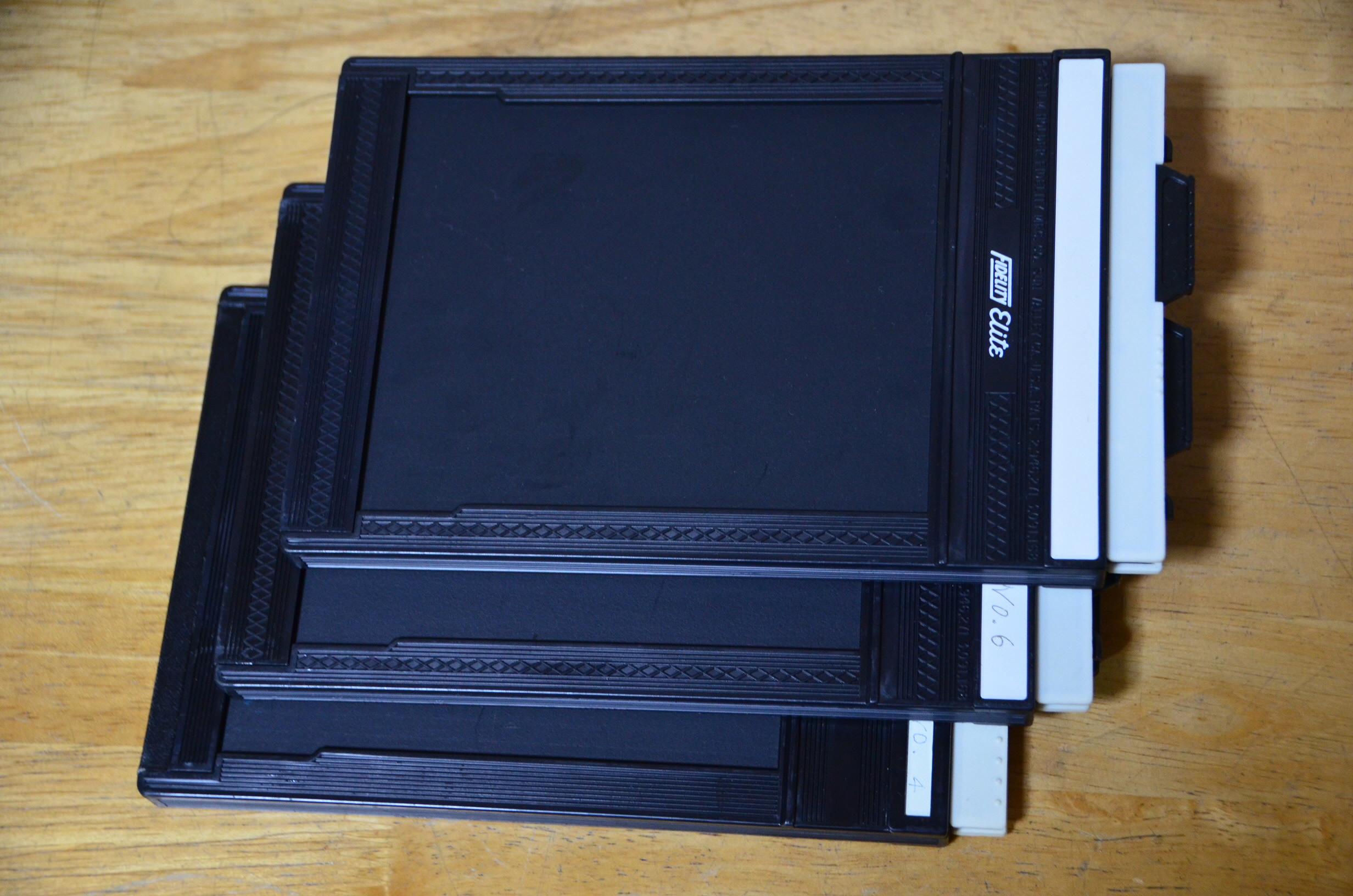 4×5のフィルムホルダーです。1個に表と裏にフィルムを1枚ずつ入れることができます。