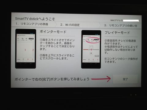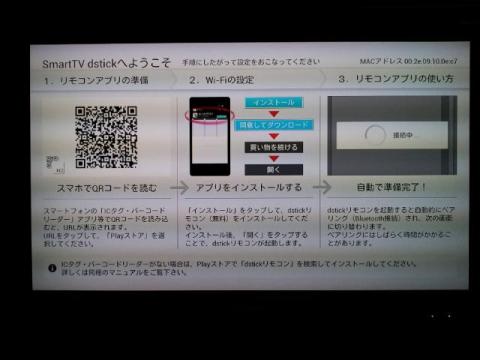 TV画面ですがリモコンアプリをインストールすると設定画面に変わります。