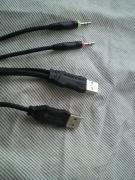 ケーブルはマイク端子、オーディオ端子、USBコネクタが2本です。