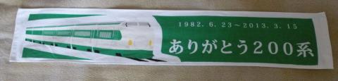 先日の北陸旅行の際に乗車した新幹線とき号の車内で購入した200系新幹線の引退記念マフラータオルです。