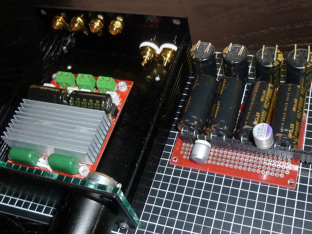 ・TA2020青基板から電源平滑C(KZ20V1000uFx4)基板を