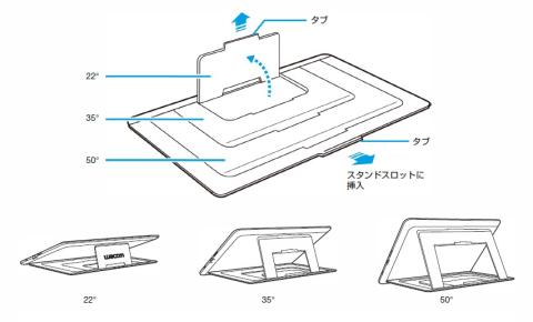 ベース?の切込みを立てて、タブレットを斜めにセットするができます