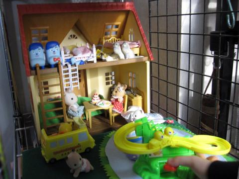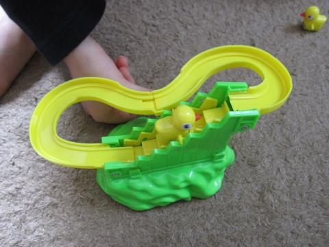 娘が食いついてGETと相成りました。ボタンを押すとトコトコヒヨコが階段を登って行って、