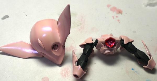 本体色も無事に吹き終わり、ピンク色の部位にクリスタルカラーを吹付けてみました。