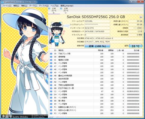 まずはディスク情報ということで、Crystal Disk Infoを見てみます。