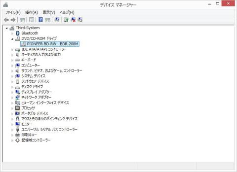 PCのデバイスマネージャーでは、PIONEER BD-RW BDR-208Mと認識されます。