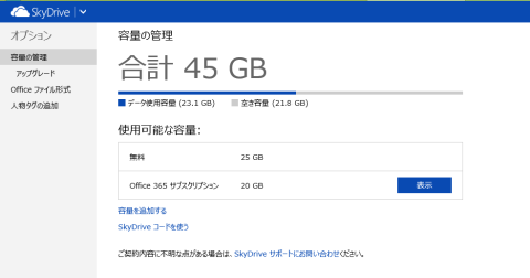 おまけでSkydrive20GB、スカイプ通話60分が付いてきます。