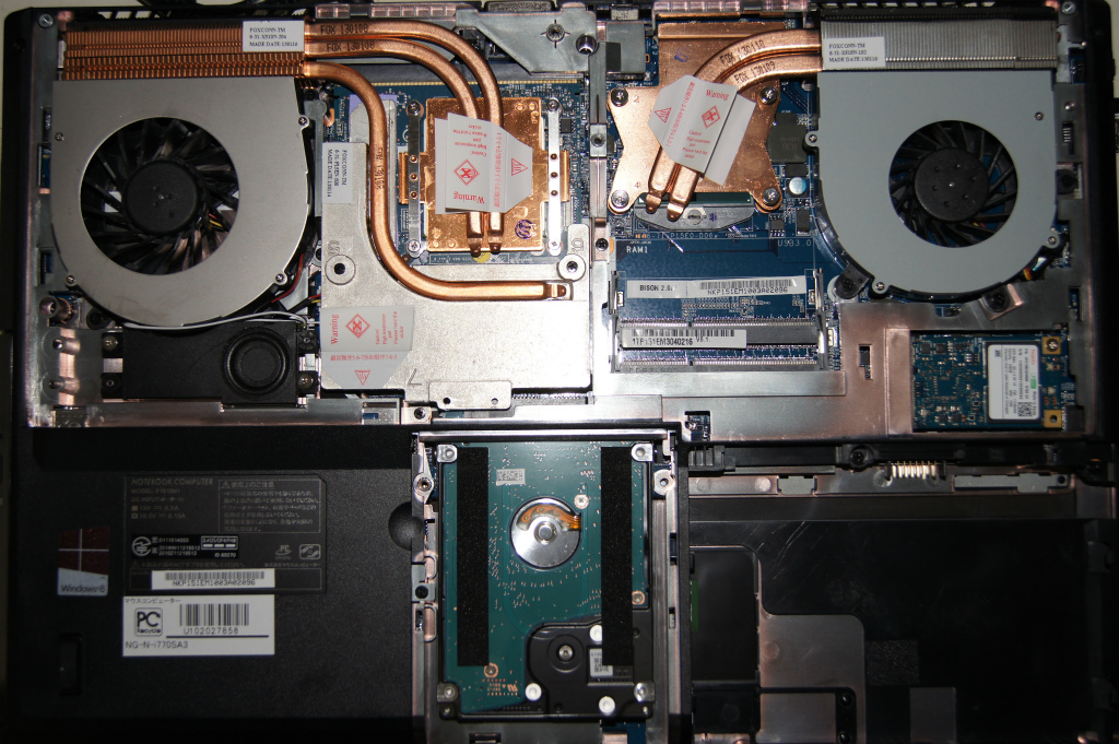 中央下の部分にHDDが内蔵されていますので交換は容易です。