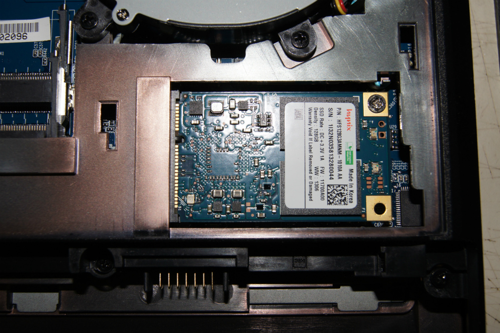 右のCPUファンの下にあるのがmSATAのSSDです。