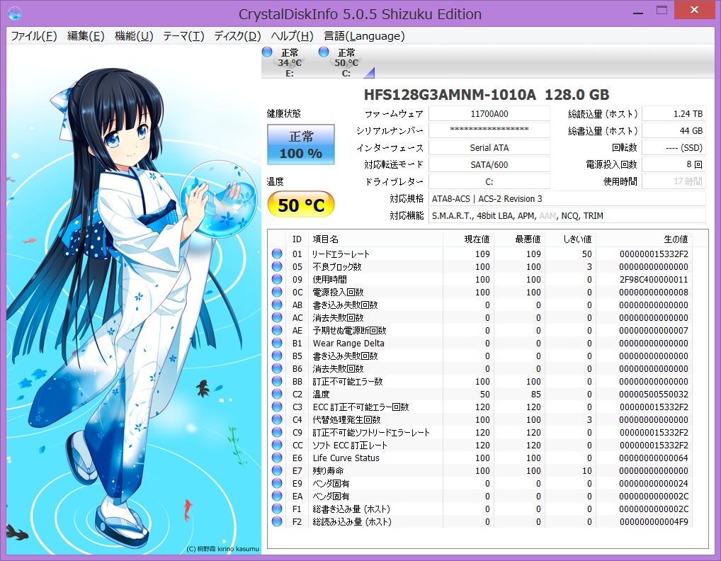 またCrystalDiskInfo5.05だと温度が50℃以上と警告されますがそんなに熱は持ちません。