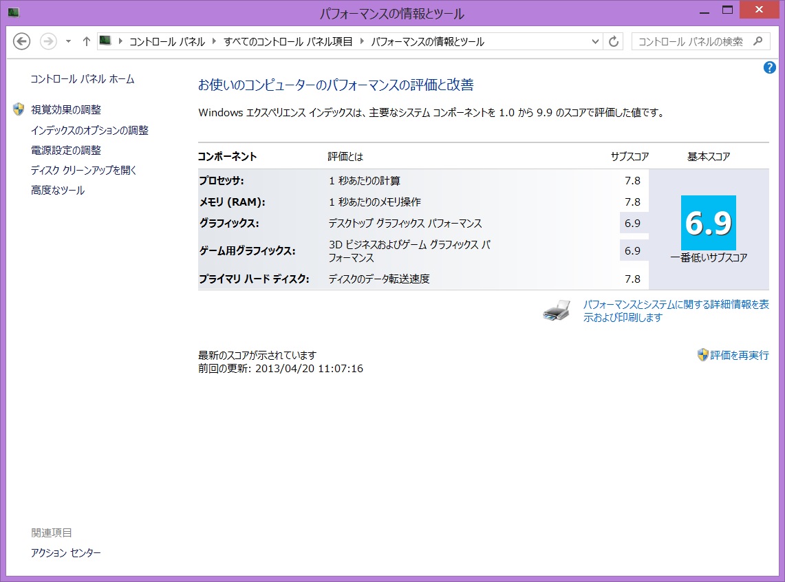 グラフィックが6.9と若干微妙なのはHD4000側で計測されている可能性が高いです。