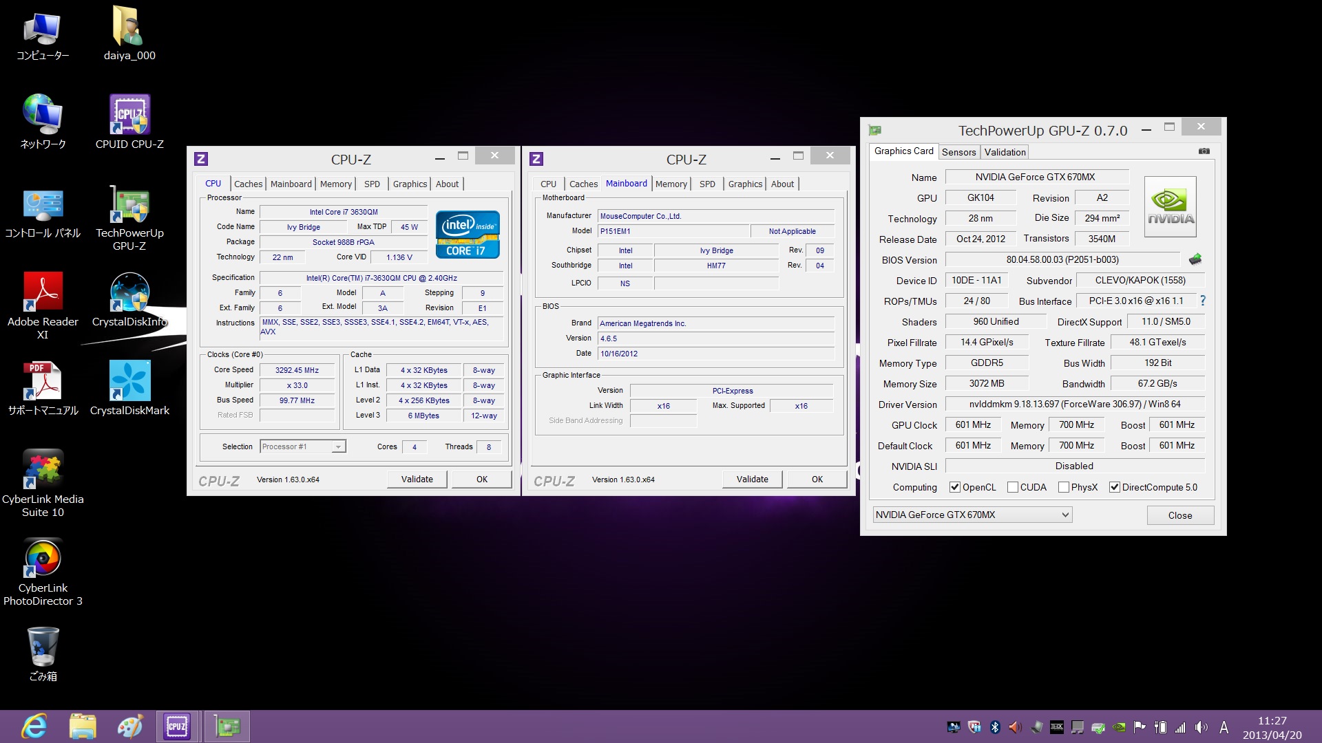 GeForceGTX670MXがGK104系のKeplerである事がわかります。