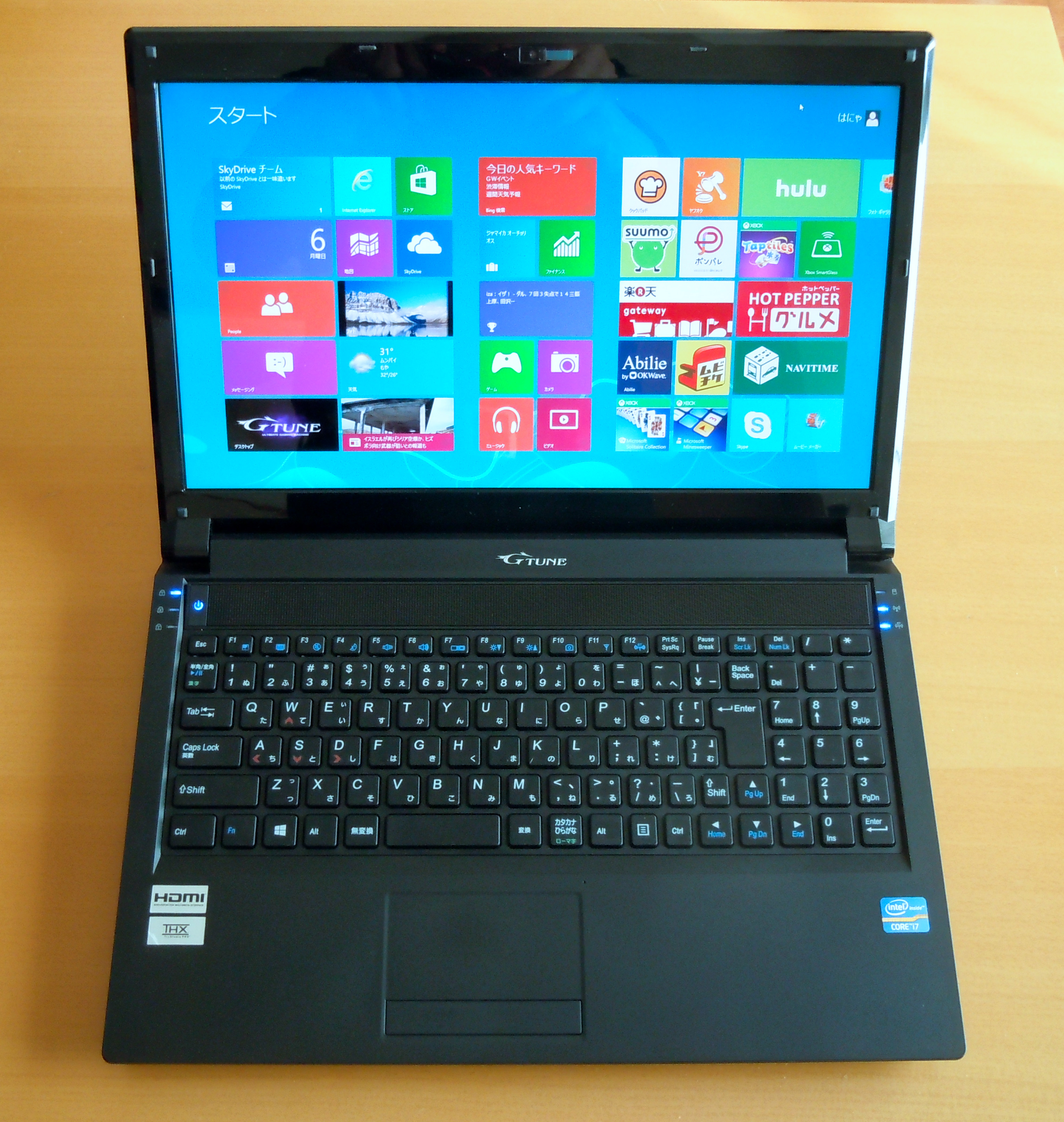 外観上の違いとしては、天板とキーボード上方に G-TUNEのロゴがあしらわれていることぐらいである。