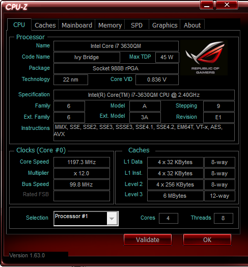 Ivy Bridge i7-3630QM により 4コア8スレッド 2.4GHz/TB 3.4GHz である。