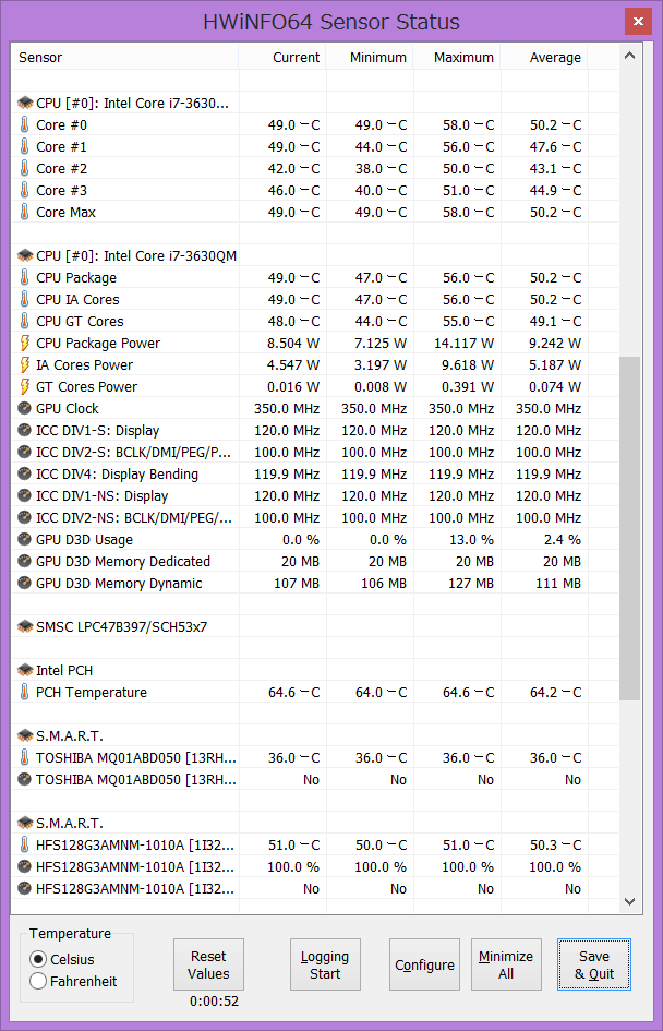 • HDDは温度センサーは有効かどうかわからない